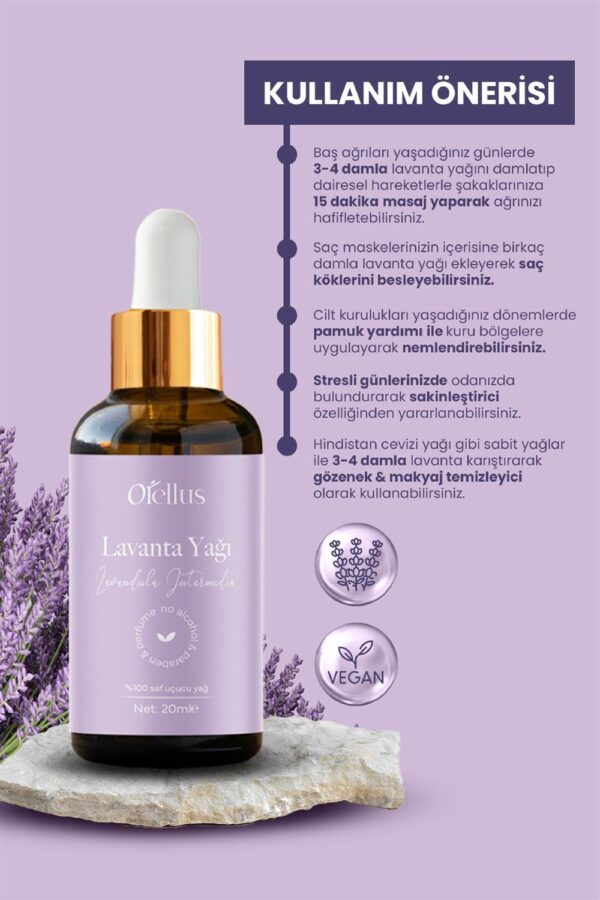 Lavanta yağı kullanımı amacınızla bağlantılı olarak değişkenlik gösterebilir. Cildinizi nemlendirmek, antioksidan etkisiyle ince kırışıklıkları önlemek için lavanta yağını cildinize uygulayabilirsiniz. Lavanta yağı faydalarını hissetmek için kuru ve temiz cilde gece yatmadan önce bir parça pamuk yardımıyla uygulayabilirsiniz. Düzenli kullanımda 3-4 gün içerisinde cildinizdeki aydınlanmayı ve nemlendirici etkiyi görebilirsiniz.
